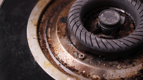 厨房里有一些顽固污渍,清理起来非常麻烦,就像是锅底用久了烧焦烧黑,燃气灶的炉头上也有着明显的污渍。
