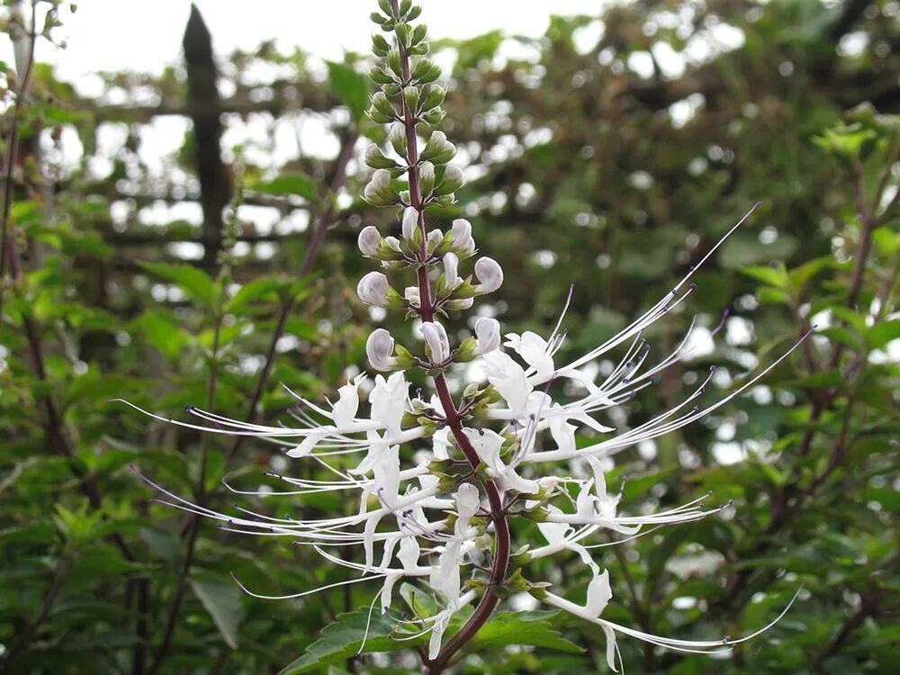 肾草的学名叫做“猫须草”,也叫“肾茶”,是唇形科肾茶属多年生草本植物,植株直立,最高可长到1.5米左右,其茎为四棱形,叶为卵形,叶子上面的颜色是橄榄绿,下面则是灰绿色,整个植株平平无奇,不过开花之后就很有意思了。