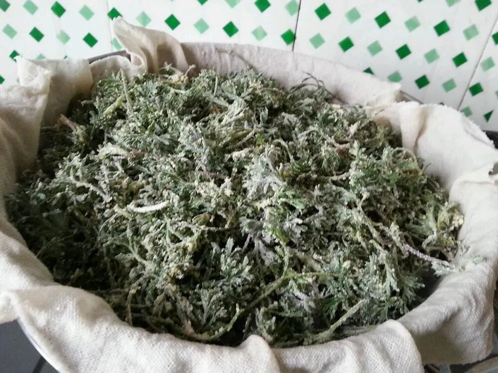 这个季节采收的白蒿在药材之中有一个专有名词:绵茵陈。在秋季采收的白蒿,因为已经长出花苞了,茎叶变老,已经看不出春季时长有白色绒毛的样子,但它也有药用价值,这个季节收割的白蒿也有一个专称:花茵陈。