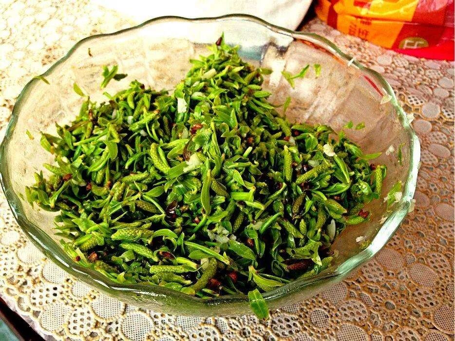 柳芽这种冷门野菜,凉拌、清炒这几种方式并不适合它,用它来做蒸菜才是比较好的吃法。蒸菜做法也简单,先用油把柳芽拌匀,然后加入蒸菜粉或者面粉,让柳芽均匀裹满面粉,再上锅大火蒸熟。