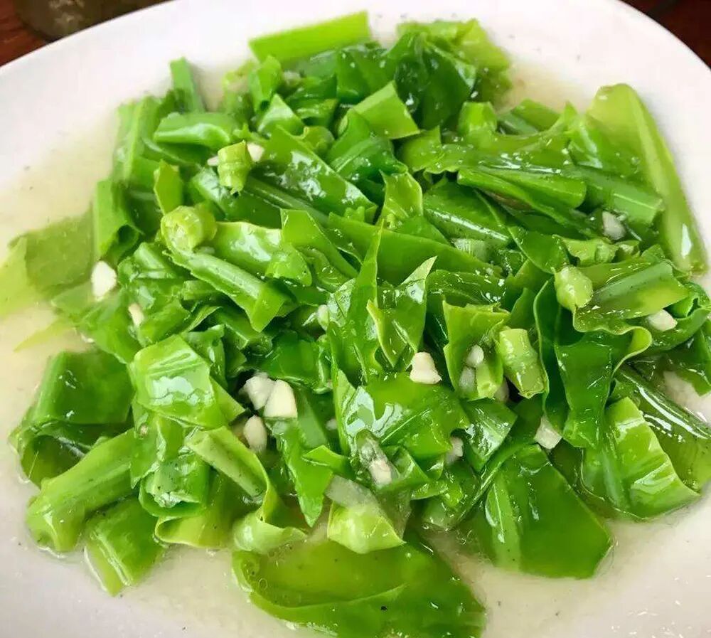 山苏菜长得就像碧绿的海带,叶片宽,口感脆嫩,吃起来相当清爽。而且山苏菜有一个优点,那就是当它炒熟之后也不会变色,颜色依然是绿得沁人心脾,看上去就引人食欲大开。