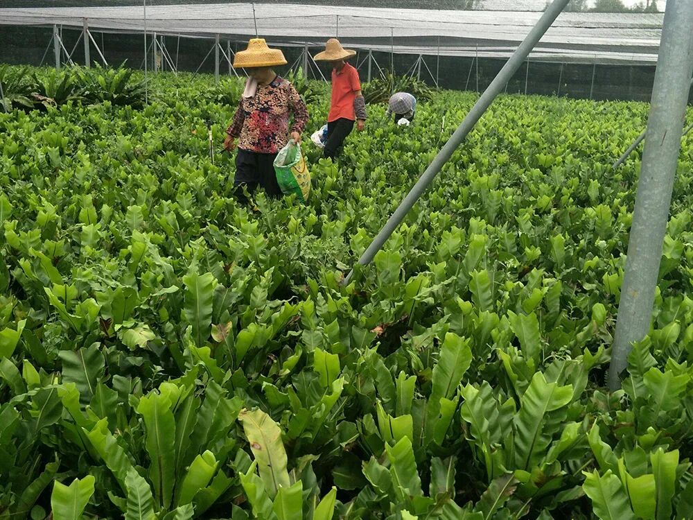 采摘山苏菜时,就像采摘野生蕨菜,只摘取它卷曲的嫩茎叶部分,产量其实并不算高。由于产量不高,种植规模也还在发展之中,所以目前山苏菜的市场价格还是很贵的,基本上40元左右一斤,品质好的还会更贵。