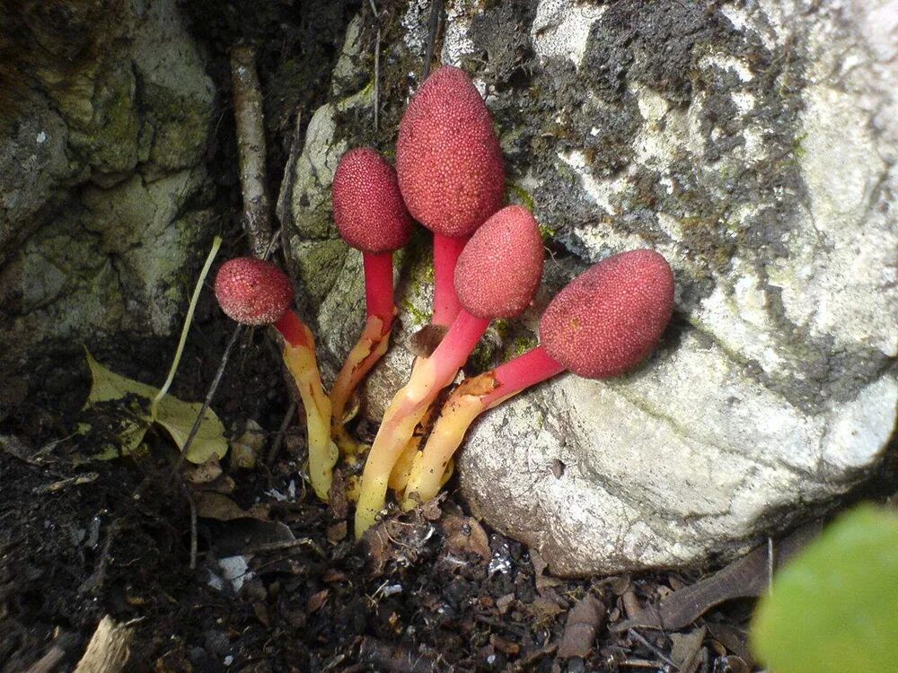 这种奇特的植物就是“红冬蛇菰”,也叫红冬蛇菇。为何说红冬蛇菰是种奇特的植物,因为不管从名字来说,还是从外形来说,红冬蛇菰都会让人联想到蘑菇,更为重要的是,它的颜色格外鲜艳,初生时,顶部一般为粉红色,之后会生长成鲜红色或者暗红色。