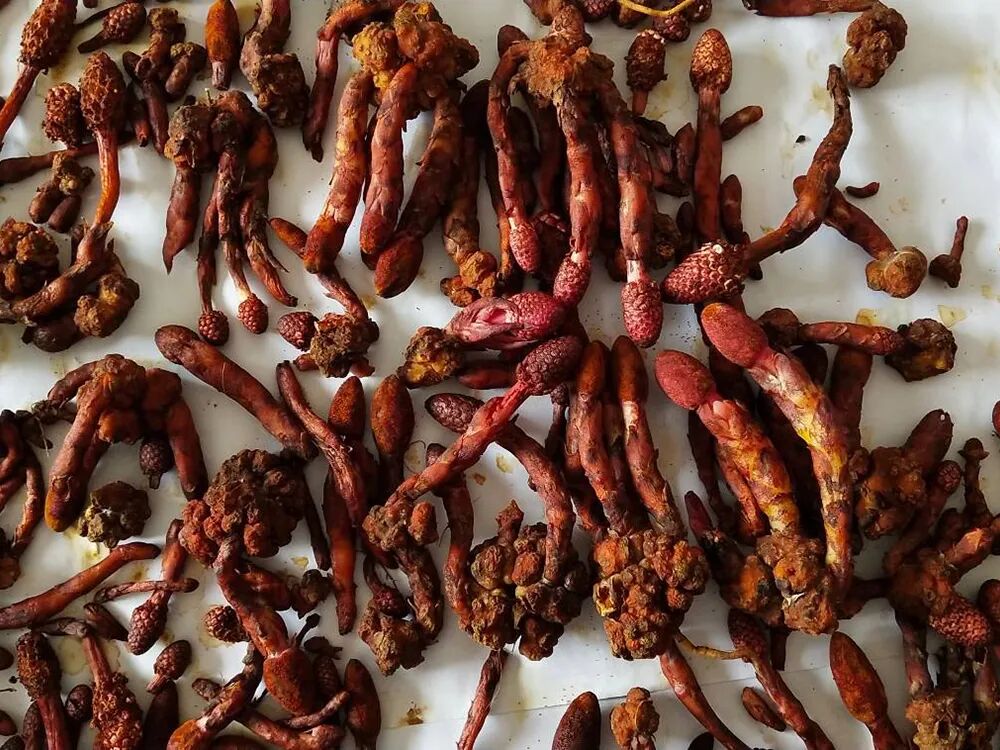正是由于红冬蛇菰的野生数量少,产量小,使得它成为了民间一种价值很珍贵的药材,在一些地方也被称作“回春草”、“蛇灵芝”等。而在红冬蛇菰原产地的市面上早年间的价格就已经卖到了50多元一斤,如今干货更是高达几百元一斤。