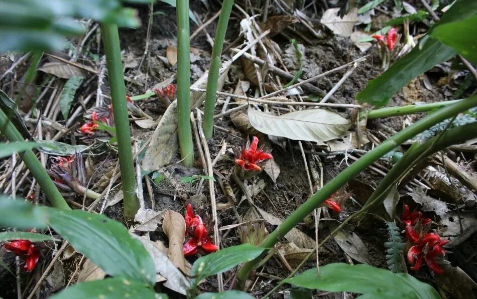 说到阳荷笋的花,不得不说很有意思,一般植物的花都开在枝头上,可阳荷笋却不是如此,你站着就别想看到它的花,得蹲下来才行,因为这阳荷笋的花开在根部。