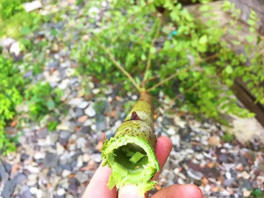 不过在农村地区,虎杖最常见的叫法还是“酸筒杆”或者“酸妹杆”,这是因为幼嫩虎杖的茎秆可以食用,吃起来味道酸甜酸甜的,而且虎杖的茎中间是中空的,跟个筒子一样,故而得名。