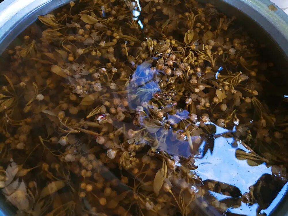 处理棠梨花有些麻烦,不能直接炒,因为它的味道会有一些苦涩。摘回去之后,先是要筛一遍杂质,然后挑拣小树枝和老叶,再清洗干净,入锅沸水煮几分钟。焯水的步骤是为了去掉一部分苦涩之味,毕竟是野梨花,苦味和涩味肯定是有的。