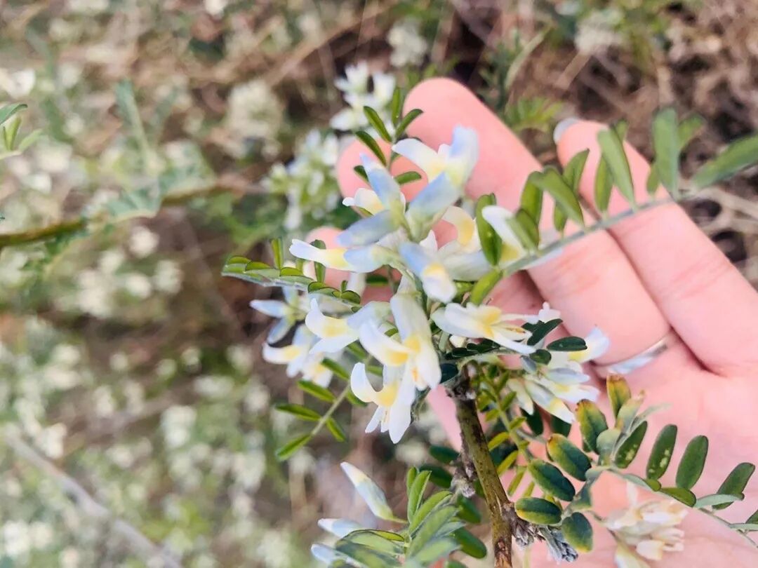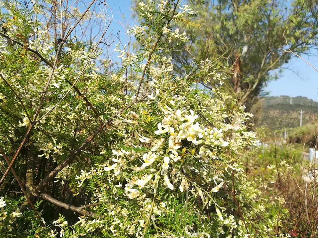 这种野花名为苦刺花,因它的花朵为白色,又名白刺花。正如其名,苦刺花的枝条上全是锋利的尖刺,采摘时要慢慢摘,不然被它的刺扎到的话特别痛。