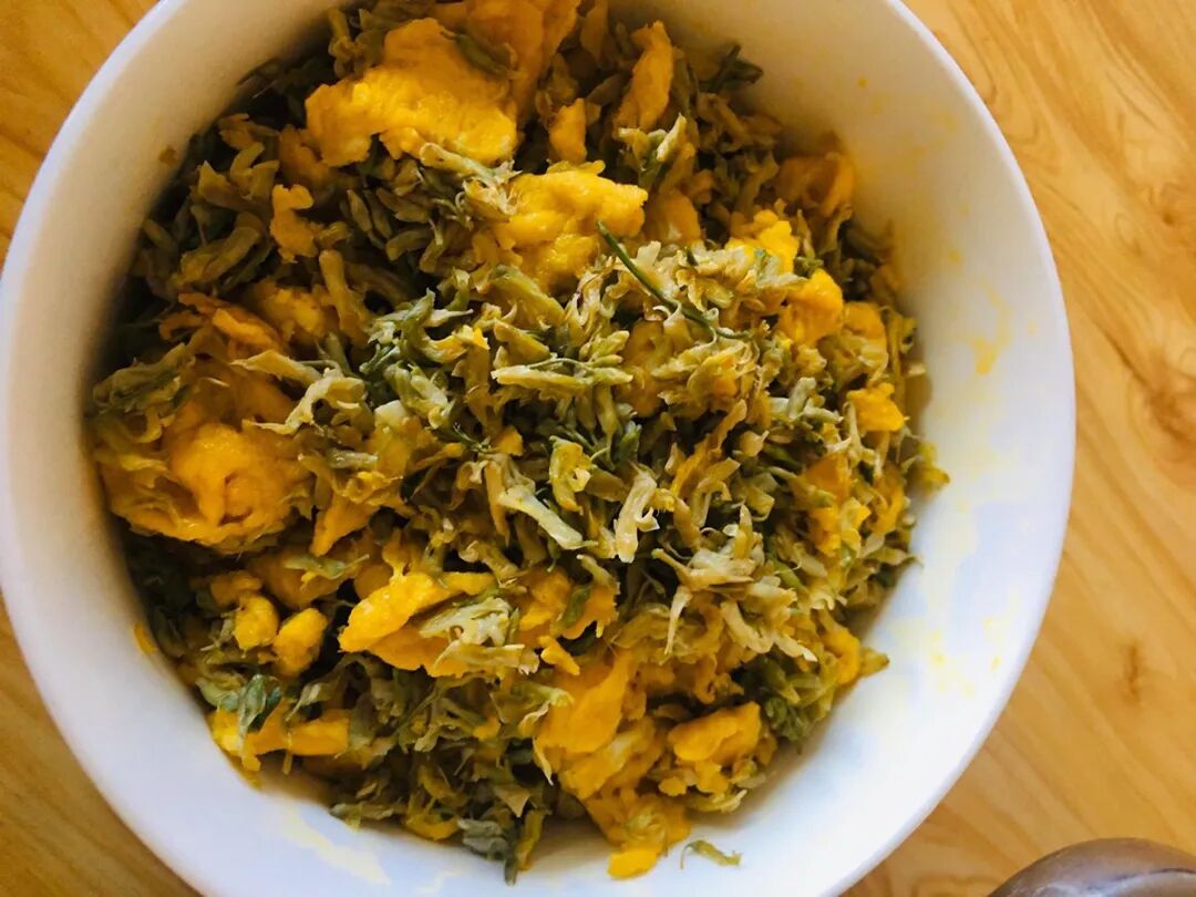 苦刺花焯水时的气味真好闻,浓烈的香甜味带点微苦,但花却很苦的,能吃苦味的人可生炒,不太能吃苦味的可清水漂1到3天,不能再多,没了苦味就不好吃了。也可分小袋拧干水份放冰箱里冷冻,以前没冰箱,就只能现摘现吃,现在家家都有冰箱,喜欢苦刺花的可以多摘点冻起来,解冻后一样好。