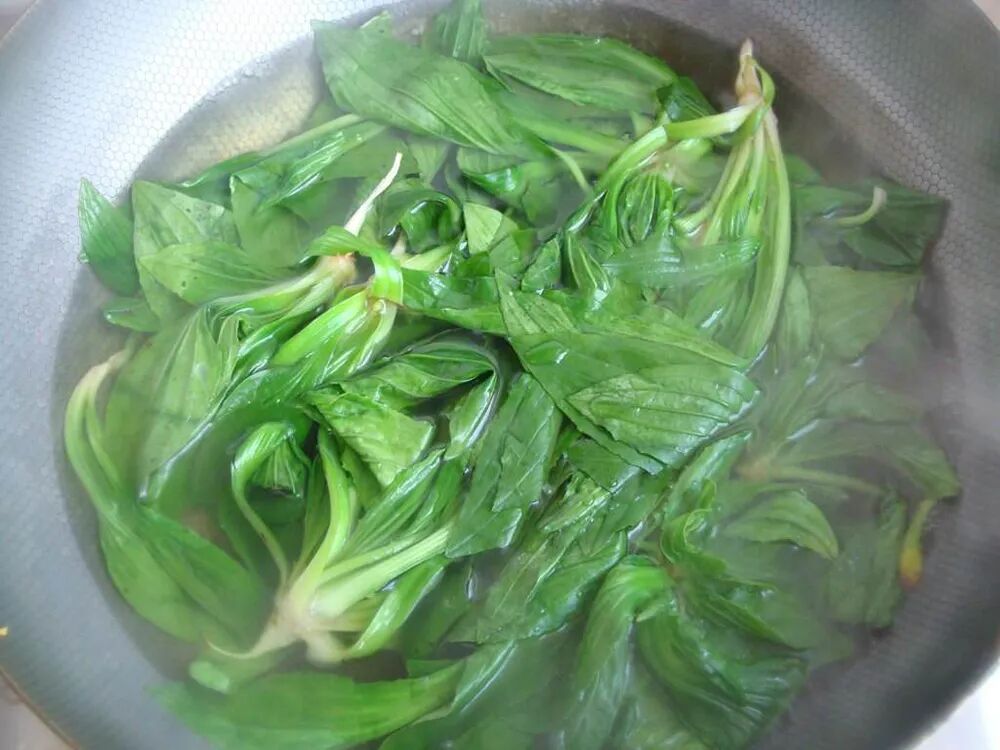 其次,车前草还可以作为野菜来食用。春季刚长出来的车前草,全株都可以吃,包括它的根也同样能吃,用沸水轻煮后,凉拌、蘸酱、炒食、做馅、做汤或和面蒸食都可以,味道都十分不错,有一股甘甜味。