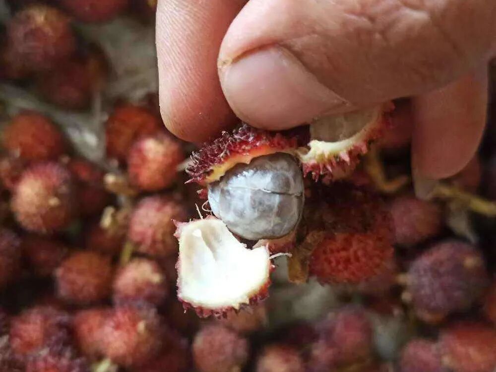要知道这砂仁果实虽然像杨梅,可不能直接吃,得把外面那层硬壳去掉才行,而里面的果肉则是甜中略带果酸,同时还有一股辛辣味。