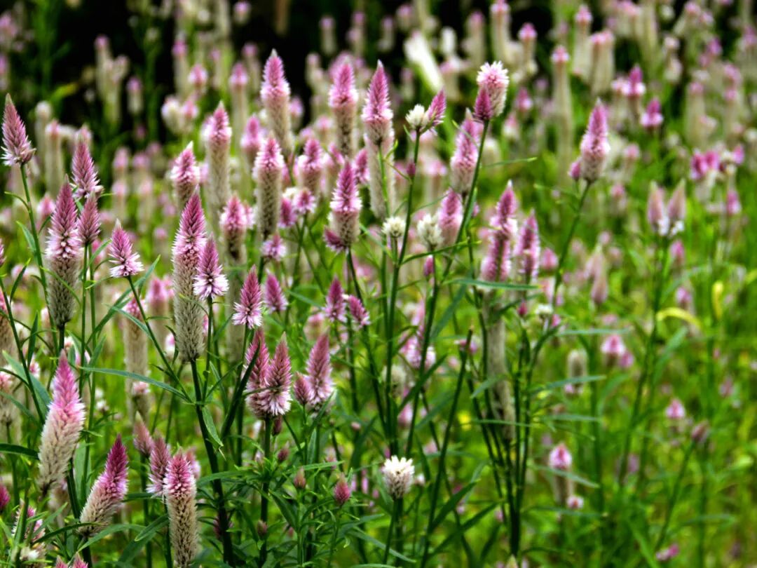 青葙的花和狗尾巴花很像,花序都是呈穗状,不过相较于狗尾巴花,青葙的花那可就好看多了,它花的花色从下到上分别是白色、淡粉色、粉红色。青葙的花不仅花色好看,味道也很不错,在开花期间会散发出一股淡淡的清香味,并且它的花期也长,一般可以开一百天左右,故而在民间也有着“百日红”的俗称。