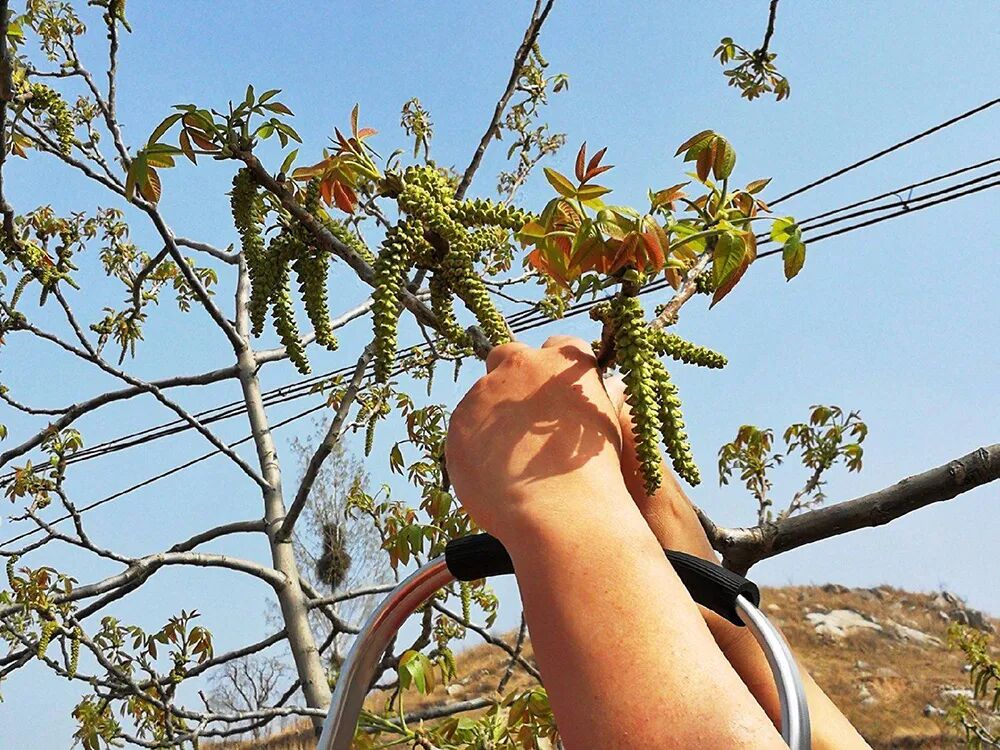 要做一盘核桃花菜,需要的核桃花数量较多,很多人都有同样一个问题,把核桃花摘掉了,还能长出核桃吗?其实,人们摘的核桃花都是雄花,雄花是专门给雌花授粉的,授完粉自己就掉了,也可以用竹竿敲下来。