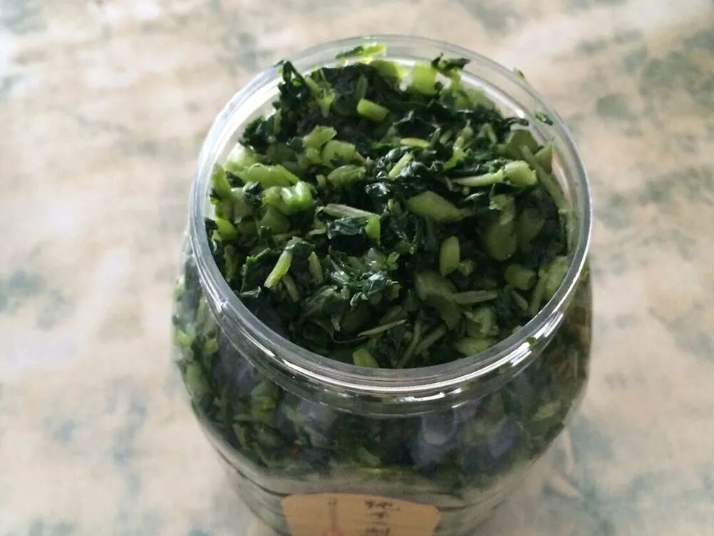 碎末之上撒上适量食用盐,拌匀,等出水之后,攥干水分,装坛或者装瓶腌制几天,等绿色的臭花菜变成黄色,就可以拿出来炒菜吃了。腌好的臭花菜香味浓郁,入口咸香,不管是直接炒着吃,还是炒鸡蛋、炖鱼还是煮汤都很香,比芥菜的香味更香。