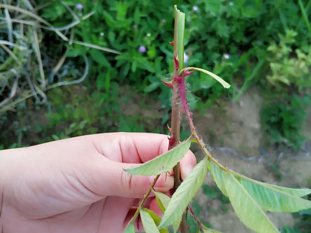 当然,并非所有的刺苔都全身是刺,也有几乎没刺的,但这种刺苔很少见。刺苔初生时茎是紫红色的,等到长起来时,茎就变成绿色了,到老了之后就变成灰白色了。它的叶子边缘有锯齿,初长出来时也是紫红色,然后就逐渐变绿了,和月季花十分相似。