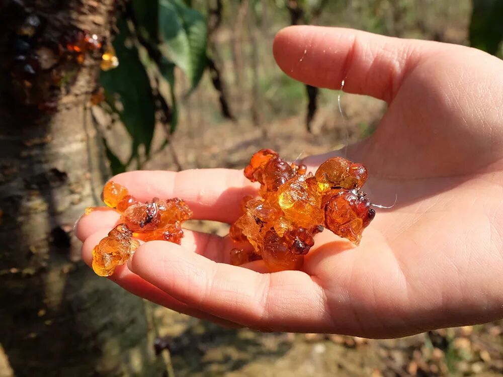 相信很多朋友已经猜出来是什么了,没错,它就是桃胶。在以前的农村里,桃树可是一种十分常见的树种,不说家家户户有,但绝大部分人家的门前或者屋后都会有那么1、2棵,甚至还有不少人的房前屋后还有皂角树、樱桃树等树木,这些树可不是老一辈人特意种的,基本上都是野生的没人管,但谁也不会去把它们砍掉。