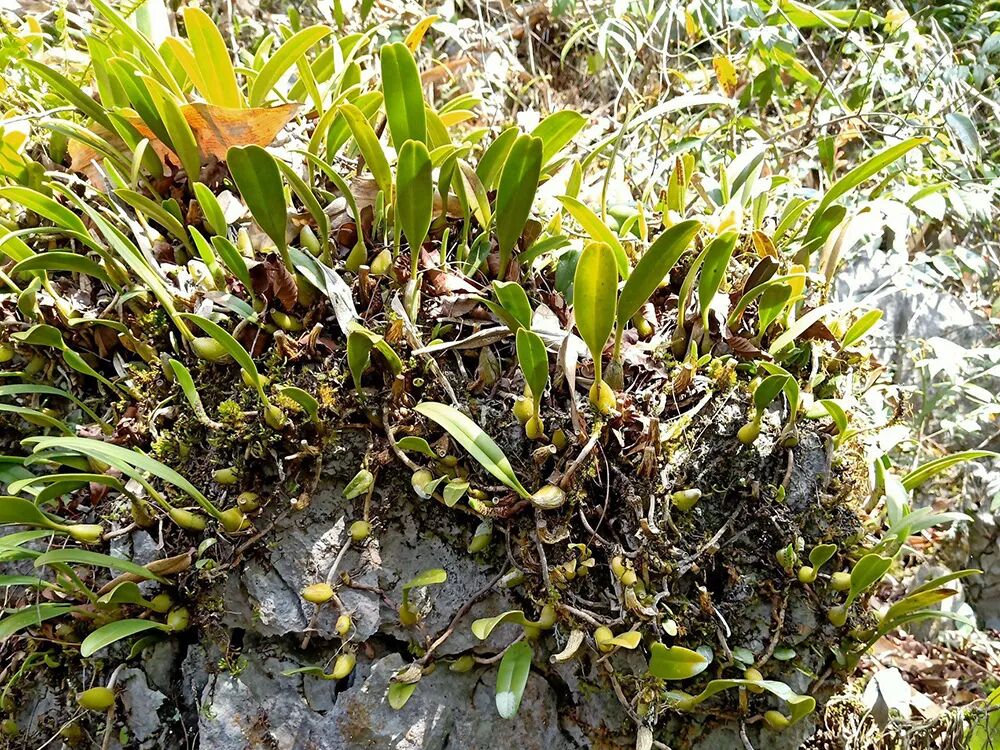 石橄榄在民间也被叫做“石仙桃”,是兰科石仙桃属多年生附生草本植物,在我国西南及华南地区广泛分布,主要分布于云南、广西、贵州、福建、浙江以及江西等省。(注:假鳞茎指的是兰科植物变态的茎,通常卵球形至椭圆形,肉质,绿色或有时为其他色泽,是贮存养分和水分的地方。)