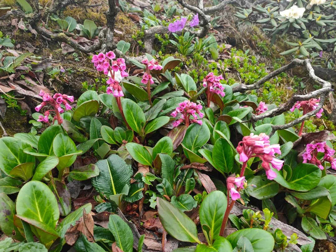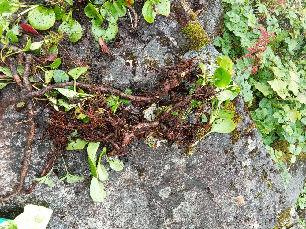 如果细细观察的话,会发现岩白菜生长之地很少有泥土的存在,基本上它是生长在石头缝或者岩壁上的苔藓之中,能长成一棵实在不容易。在这样的环境中生存,只能靠雨水和露水,这也说明了岩白菜的生命力相当顽强。