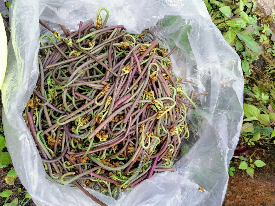 蕨菜也同样是农村野外十分常见的野菜之一,基本上在每年4月前后的山上,随处都可以采摘到,一采摘就能采摘一大袋子。它的味道也是相当美味的,营养价值也相当高,用来炒腊肉可是一绝,又香又下饭。