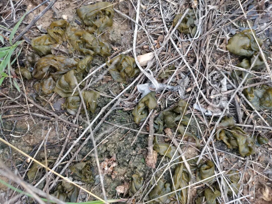而这地皮菜的外形也十分有意思,最初为胶质球形,其后扩展成片状,大可达10厘米,状如胶质皮膜,暗橄榄色或茶褐色,干后呈黑褐色或黑色。看起来犹如黑木耳,又有如某些动物的便便,故而在民间还有着地耳、地木耳、雷公屎、雷公菌、地踏菜等俗称。