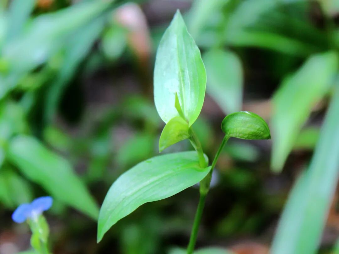 鸭跖草还有2点十分重要,那就是它的叶子和花。鸭跖草的叶形为披针形至卵状披针形,叶序为互生,颜色为翠绿色,看起来和新长出来的竹叶十分像。