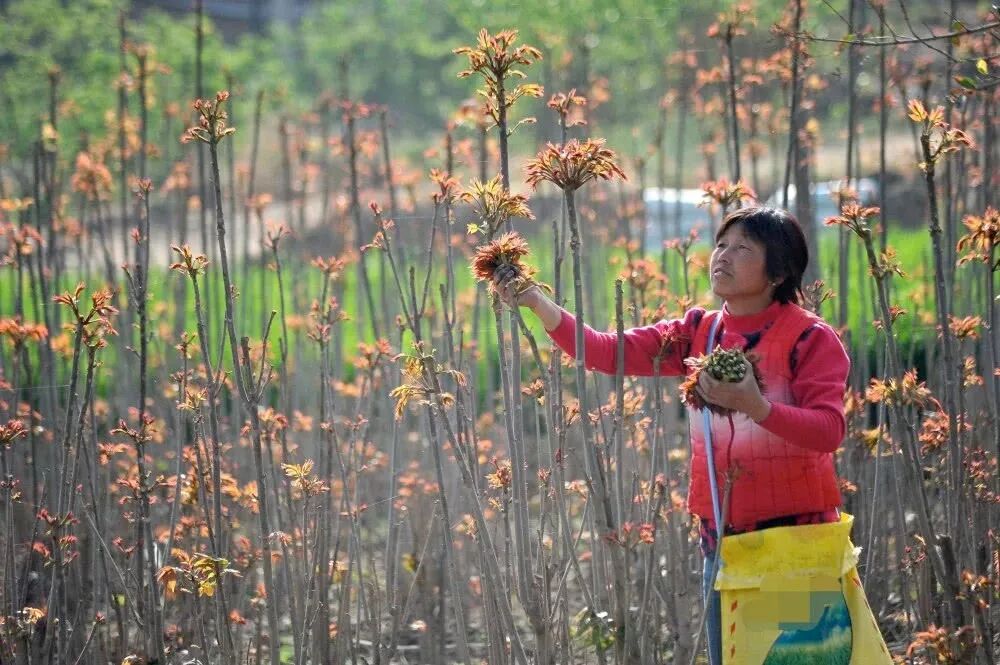 其实现在香椿树的种植也很普遍,它们作为常规蔬菜,已经有专门用于采摘树芽的四季椿树种,这种椿树就像一根树枝一样细,但它发芽快,出芽多,在冬季暖棚中有种植。