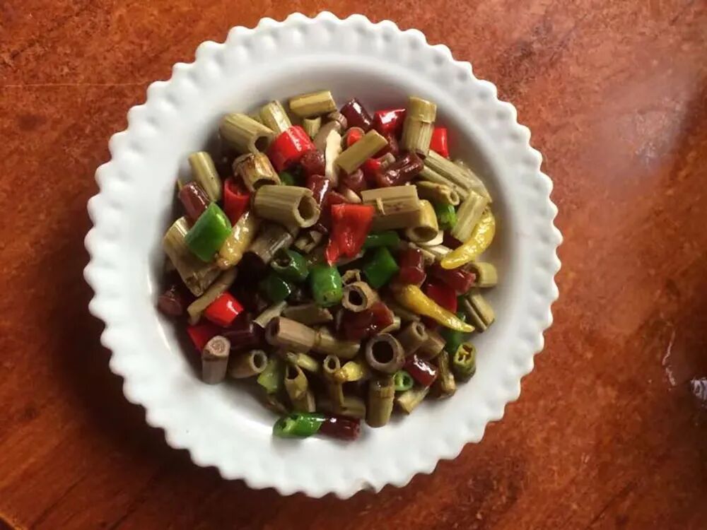 3、4月刚长出来的虎杖幼苗可以作为野菜食用,其营养价值很丰富,味道酸甜可口,可炒食、凉拌。等到5、6月时,虎杖的茎秆也长起来了,这个时候它的茎秆同样可以掰下来作为食物食用,吃法同甘蔗有些类似,嚼完以后吐掉残渣,也到也是酸甜可口。