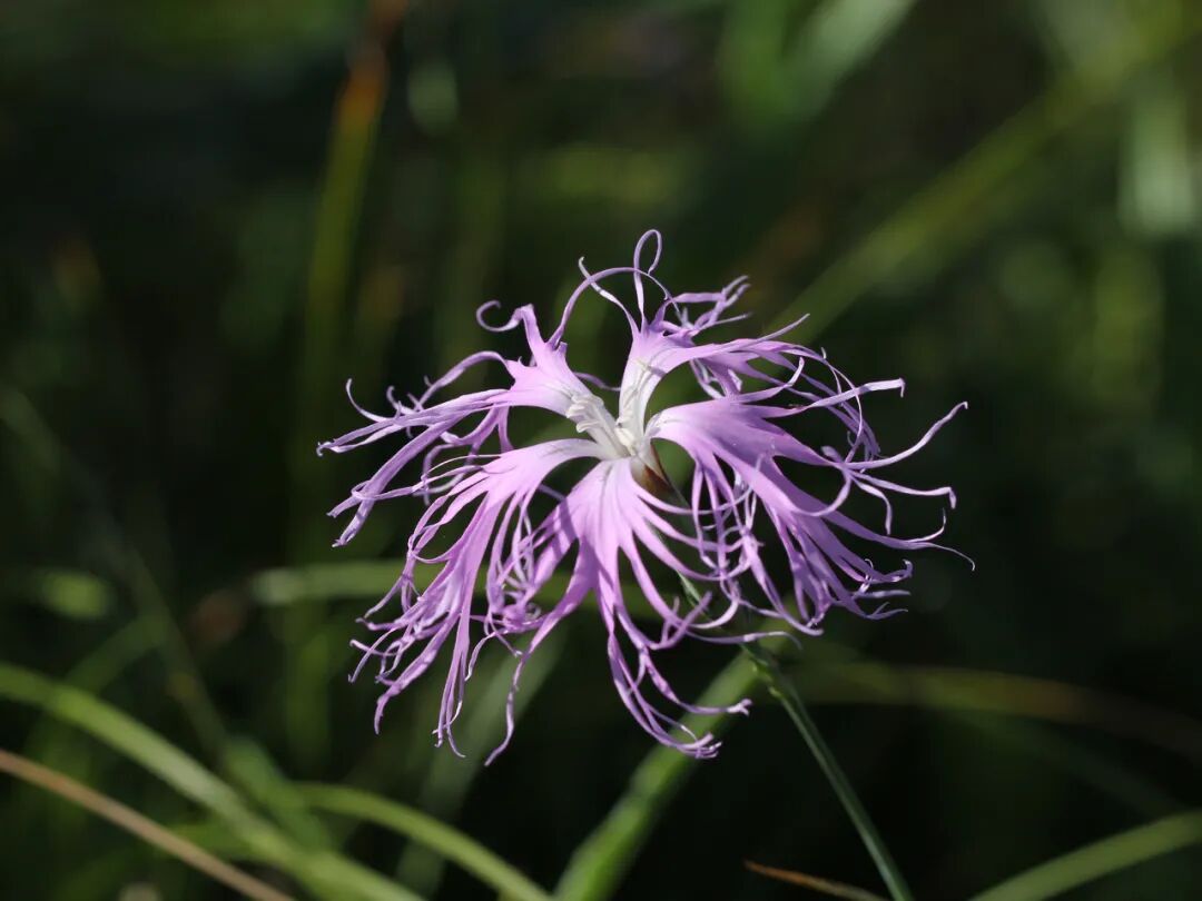 瞿麦这个名字很多人肯定很陌生,但笔者可以肯定的是,很多朋友在踏青的时候一定见过,毕竟它所开的花很有特色,花瓣呈倒卵形,花瓣有5瓣,在其花瓣边缘处呈丝状,看起来就如羽毛一般,而它的颜色通常都是红色或者紫色,十分显眼,能让一眼就从一片草丛中注意到它。