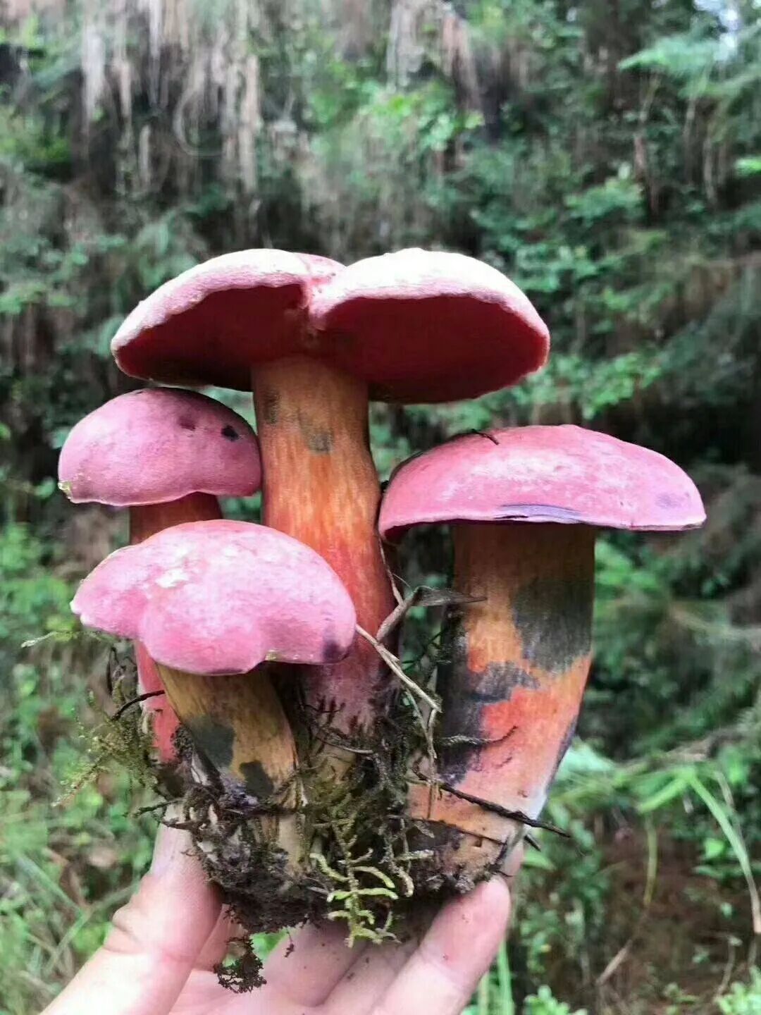 今天说的这一种野生菌,正是一种十分名贵的野生菌,名叫红牛肝菌,云南当地俗称“见手青”。想必很多人都在新闻上看到有人在云南吃野生菌产生幻觉,看到了各种“小人”幻象,这其实是一种中毒的表现,见手青如果没有彻底熟透食用的话,就会产生这类中毒情况。