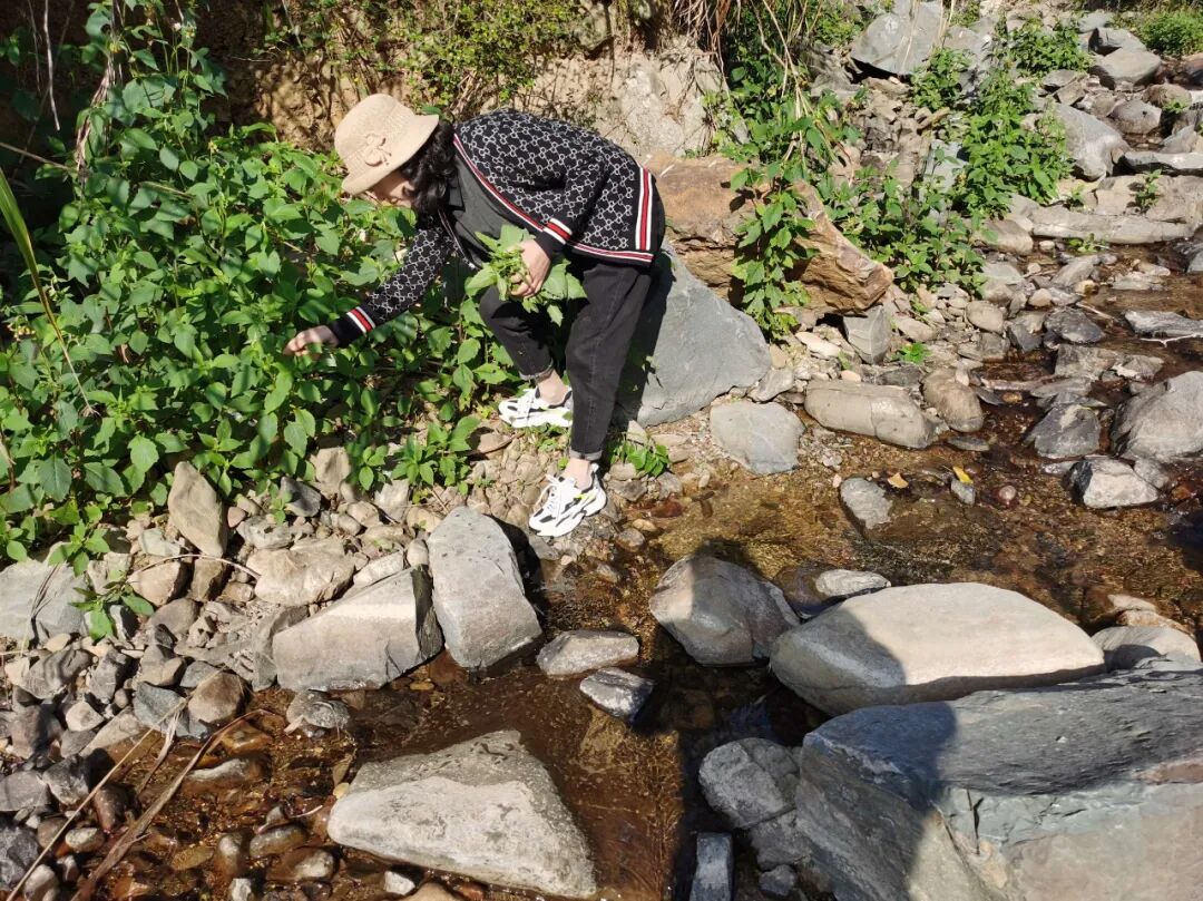 (采摘野芝麻的叶子)