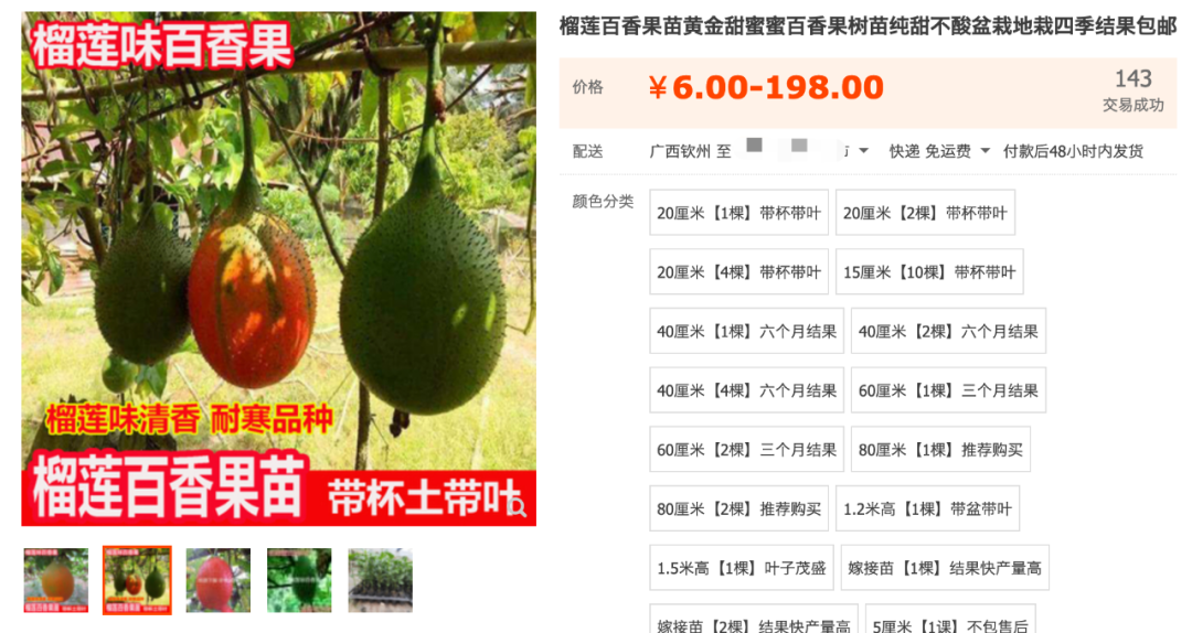 笔者也向这位读者要来了果苗的链接,点进去一看,好家伙,这丫的就是坑人的,至于为何说它是坑人的,笔者就给大家说说,也随便让大家了解下这种榴莲味百香果到底是什么!