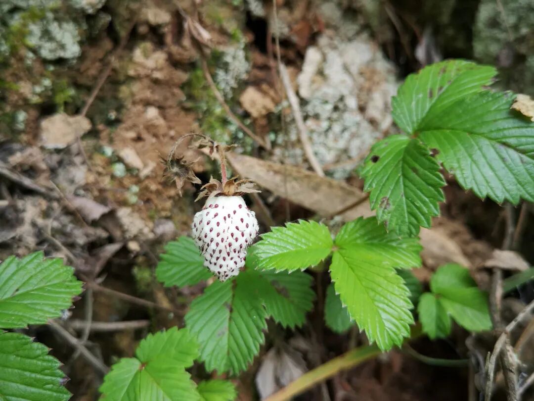 白泡的学名叫做“黄毛草莓”,它是蔷薇科草莓属的草本植物,其果实酷似草莓,不过颜色为白色,个头也很迷你。