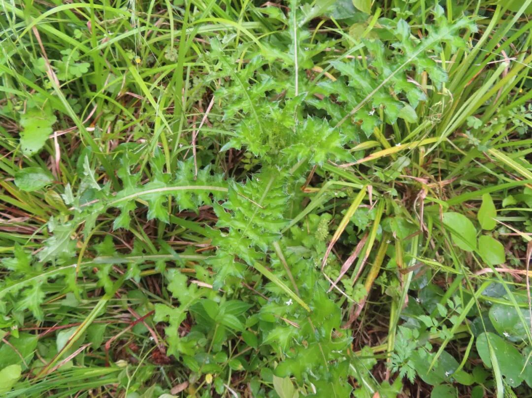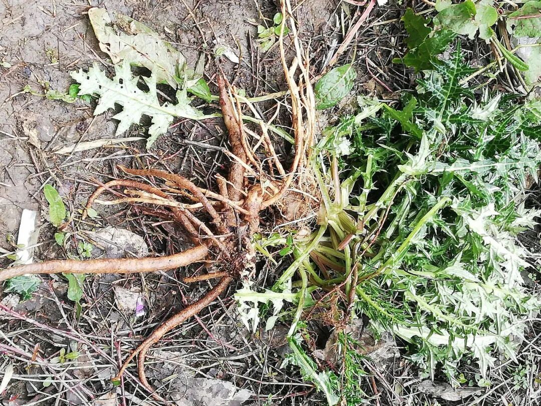 另外,在我们老家这边还会挖大蓟的根来煲汤喝,主要用于跌打肿痛,比如在山里干农活时不小心摔伤了,就用它的根。哦对了,说起大蓟根,笔者还想到了大蓟的一个别名“山萝卜”,这是因为大蓟的根是块根,看起来就像个萝卜一样,故而得名。