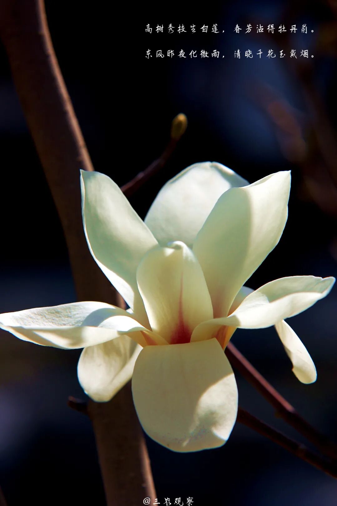 玉兰又叫望春花、迎春树,顾名思义,它是春季最早一批开花的植物,几乎是春季刚刚到来,它就迎着还有些微冷的春风开花了。
