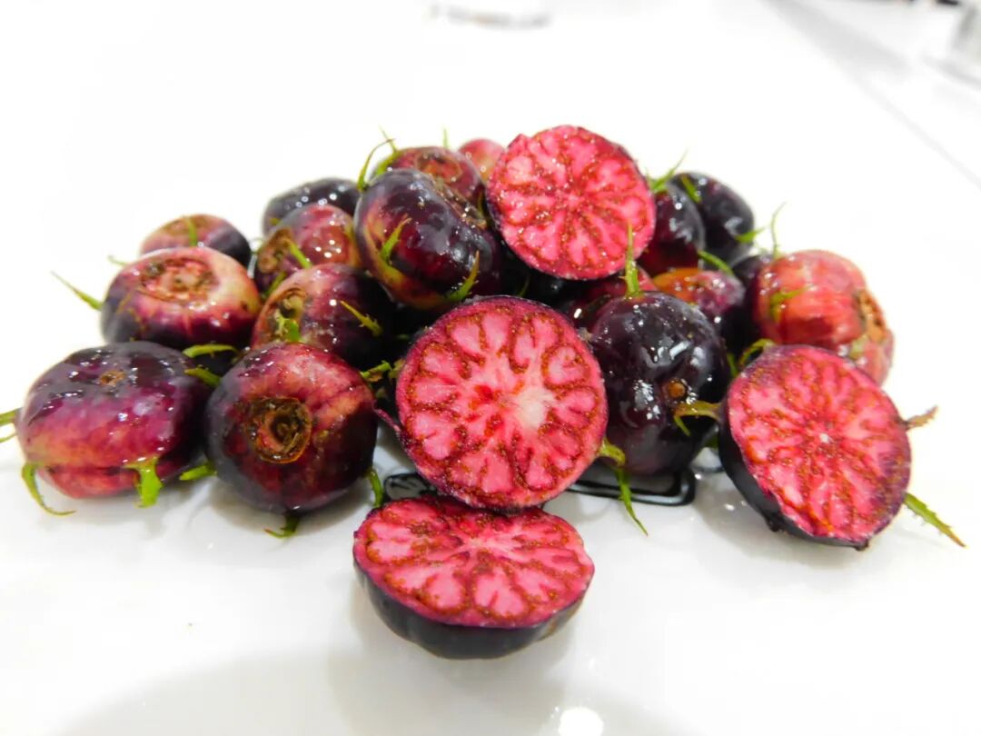 最后说明一点,目前人工种植的蜘蛛果比野生的味道要好上,而野生的蜘蛛果“变异”品种也比较多,像笔者本人,就吃过白色、红色、紫黑色的野生蜘蛛果,每种的口感也不一样,想吃人工种植的还是野生的,根据自己的喜好来哦!