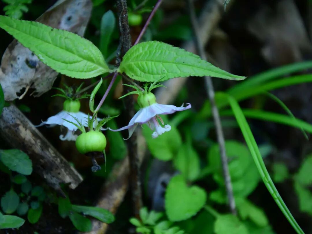 长叶轮钟草的果期一般在10月份左右,其果实十分特别,果实呈扁圆状球形,在其果实上边还长有6到8根萼片,让其看起来和蜘蛛十分相似,故而得名“蜘蛛果”。