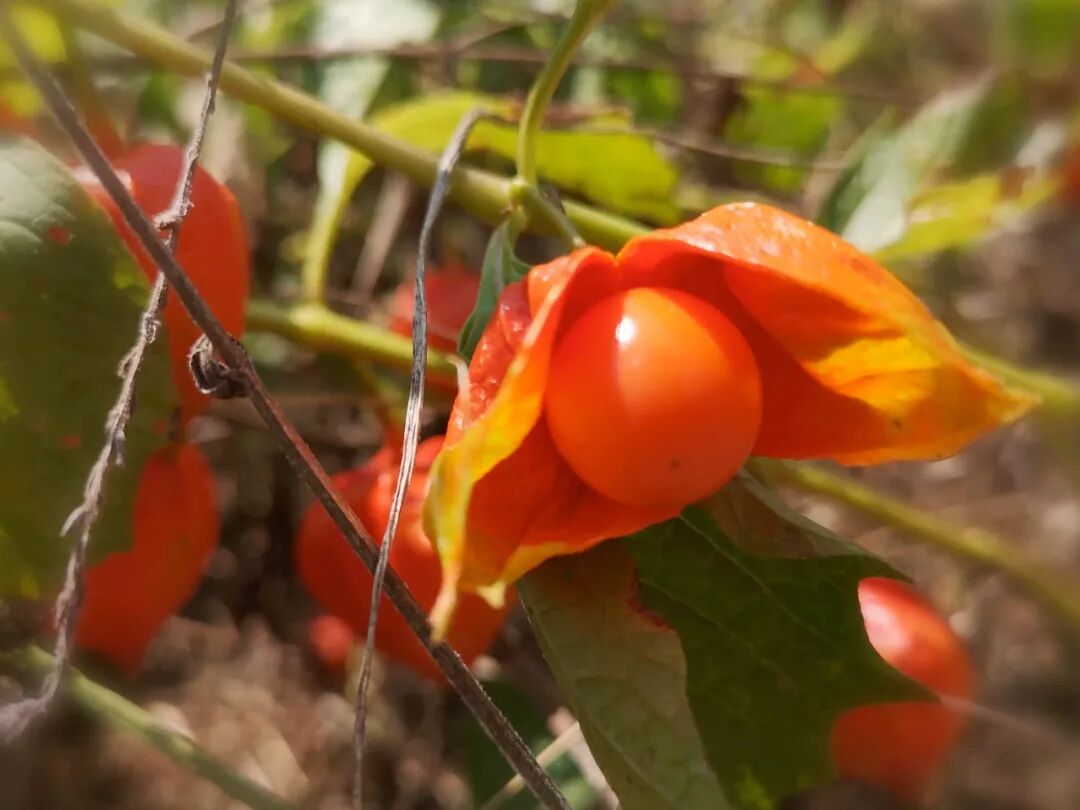 而酸浆的果实不仅长得十分鲜艳,其味道也十分不错,味道酸甜可口,果汁也多。像笔者儿时那会,就会经常去我老家这边的山坡上去采摘酸浆来吃,那时候经常是用衣服兜一大把酸浆,然后当零食慢慢吃。