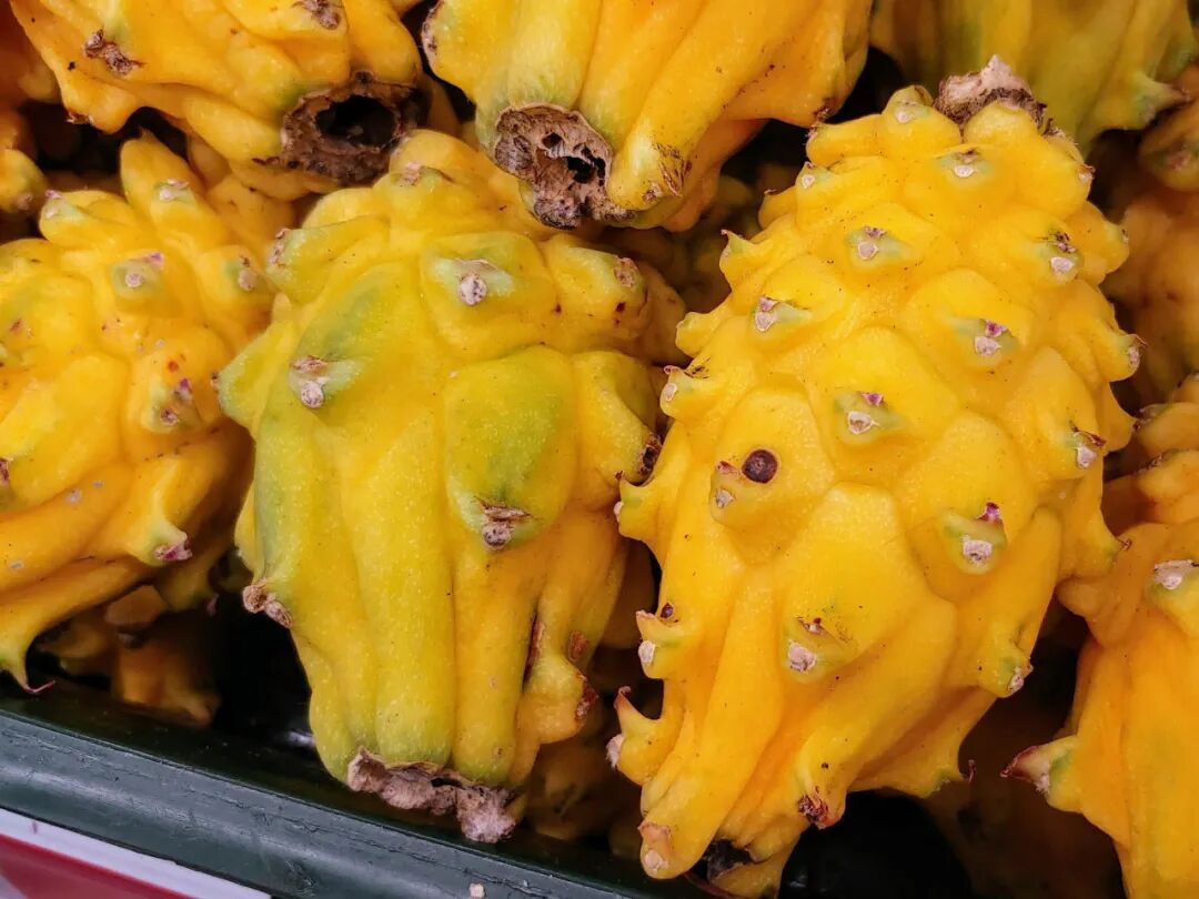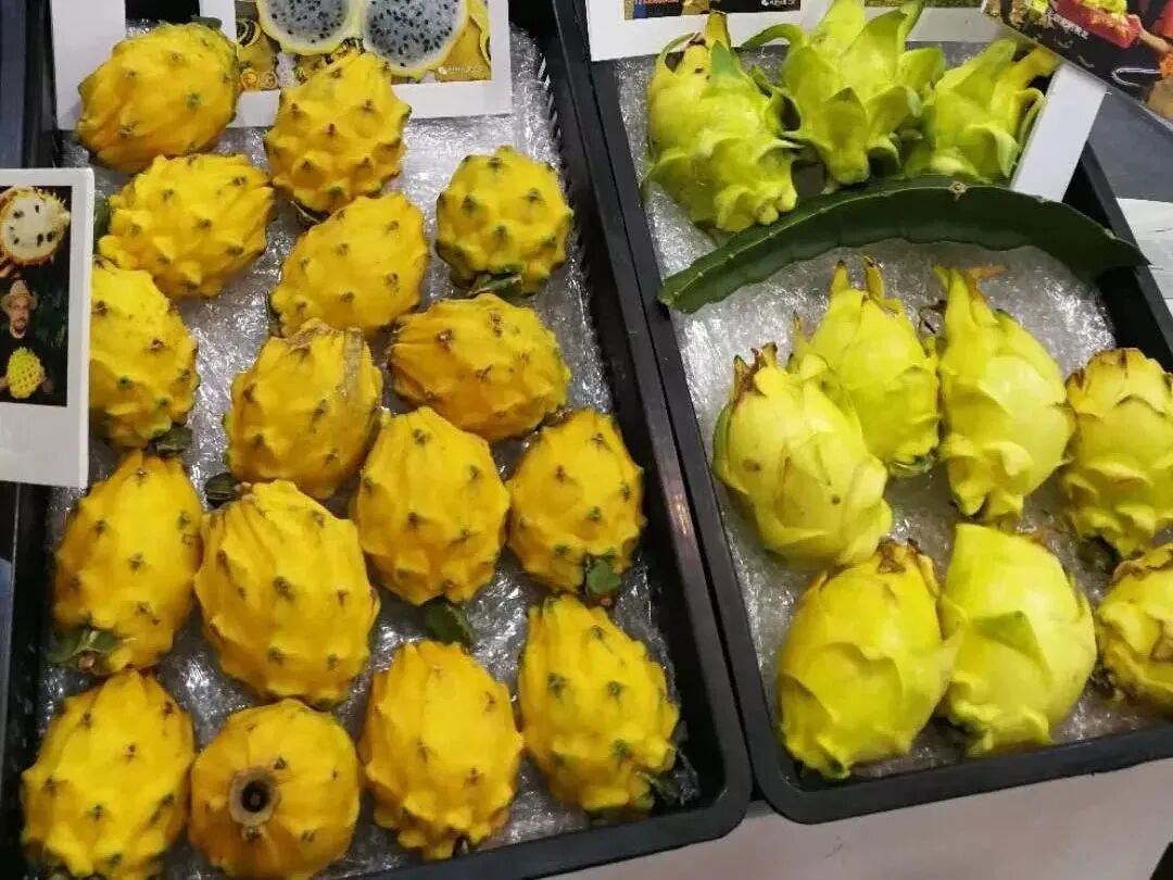对了,黄火龙果和火龙果一样易种植,产量也大,目前在我国种植的也比较多,价格比红皮的火龙果贵,但比麒麟果便宜很多,但奈何它和麒麟果颜色几乎一样,有些商家就会拿黄火龙果冒充麒麟果。
