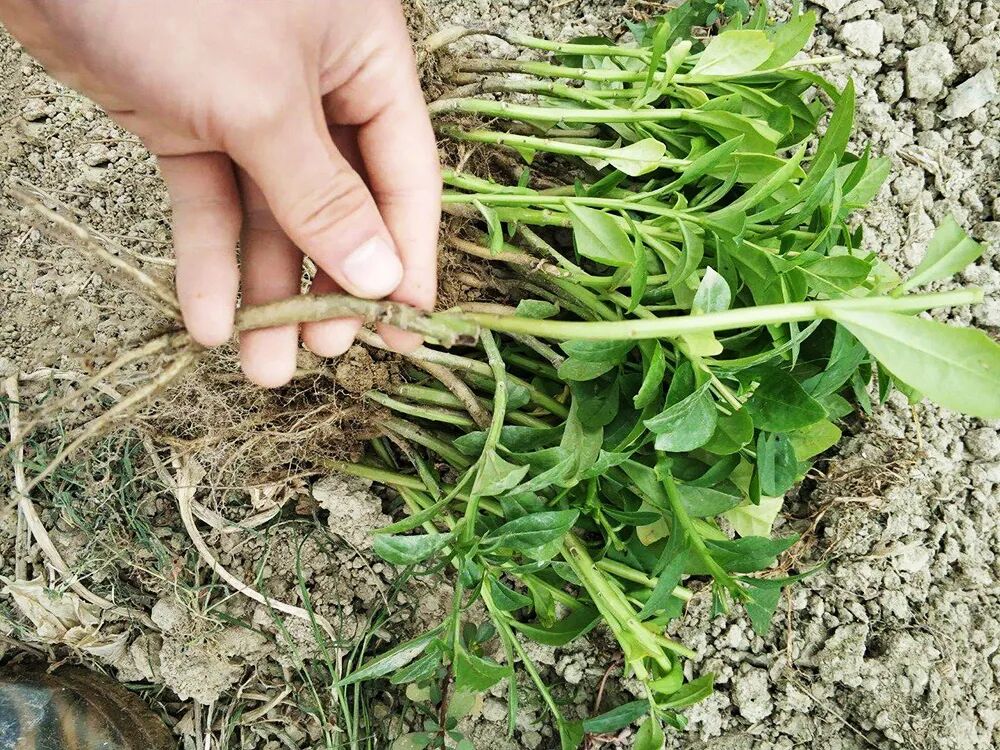 一般在打霜之前,栌兰的嫩叶都可以摘来吃,打霜之后天气越来越冷,栌兰开始枯萎,此时就可以准备挖根了。栌兰的根部长得有点像人参,这也是它土人参名字的由来。它的根部是肉质根,可以是一年生,或者多年生,到了冬季把它的肉质根挖出来,能煲汤喝。