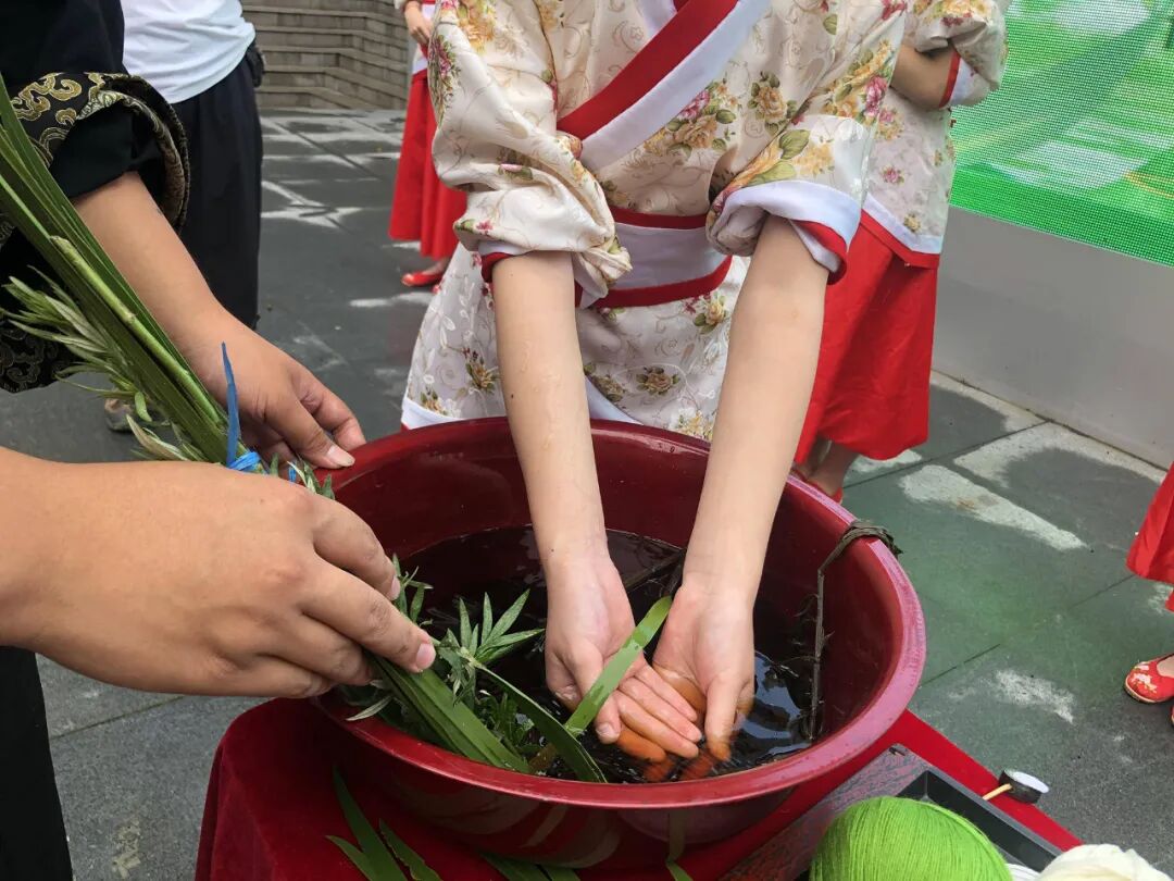 在古时候,五月初五这天还有“浴兰节”的称号。屈原所写的《九歌·云中君》:“浴兰汤兮沐芳,华采衣兮若英。”人们在五月采摘大量兰草,用兰草煮水沐浴,有迎福除毒的寓意。