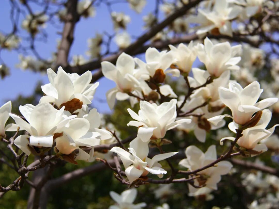 白玉兰是玉兰树的花,这个季节正好开放。白玉兰花朵大,味道清香,在我国还是种得挺多的,经常在公园、道路两旁看到,很多人家里也会种上几棵。