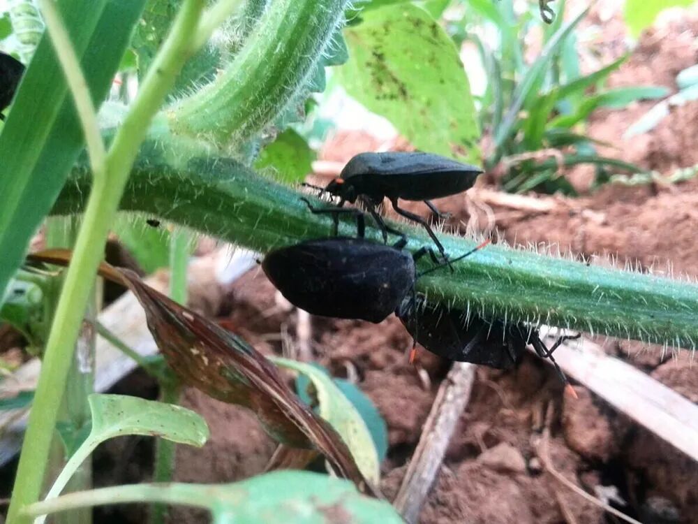 但别看它小,危害却不小,在春夏时节,瓜黑蝽就喜欢趴在各种蔬菜及农作物的茎叶上吸食浆液,也会咬食蔬菜及农作物的茎叶。尤其是葫芦科作物,如各种瓜类的南瓜、冬瓜、西瓜、丝瓜、水瓜等,是它主要的寄主植物,这样一来就会造成农作物生长不良,也算是农村的不大不小的害虫了。