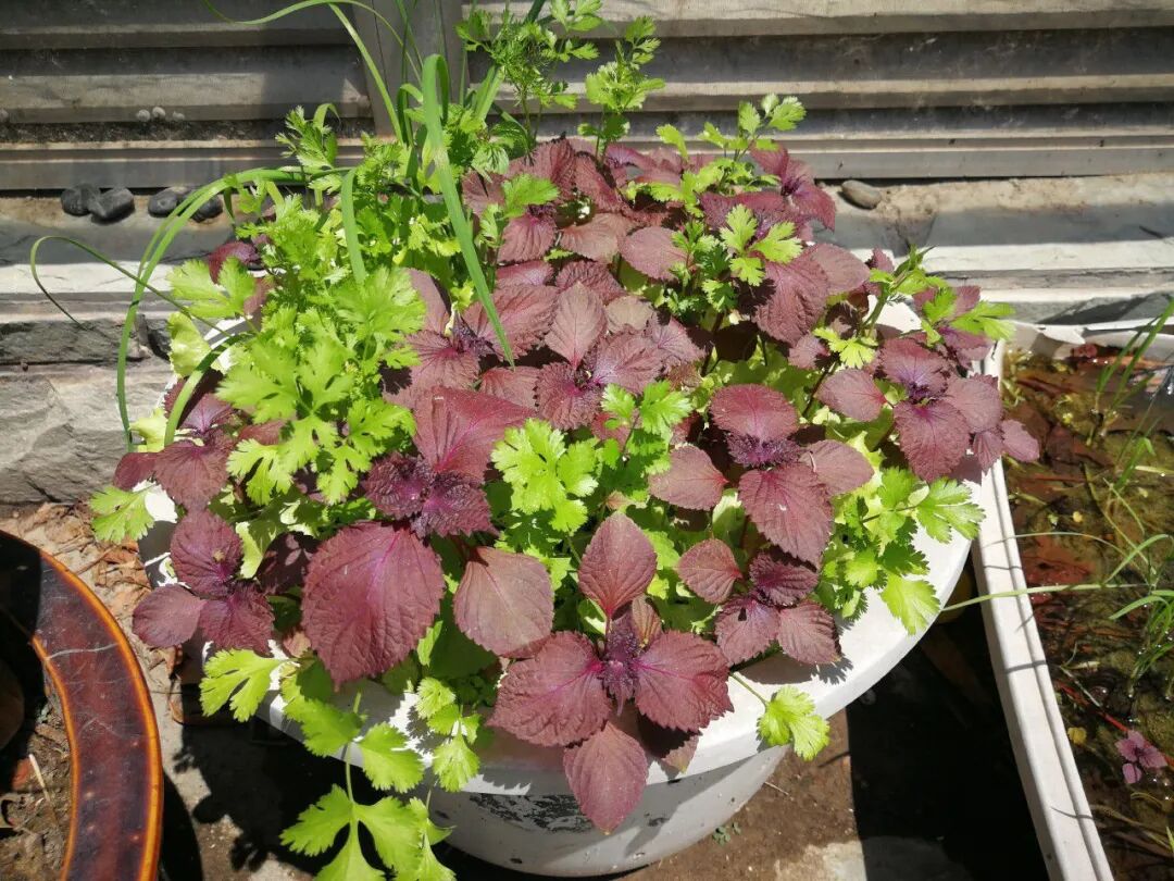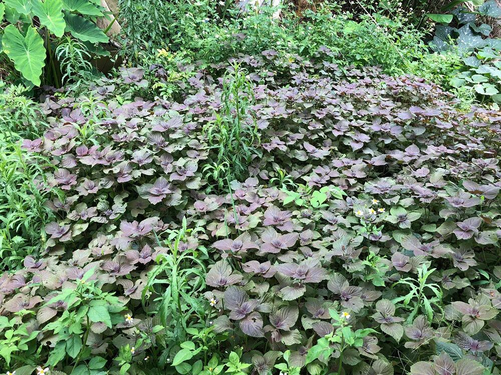 这种香料植物很多人都种过,它就是紫苏。这种紫色的植物特别好种,只要曾经在菜园里种过,之后基本不用种了,每年它都会长出新的植株,因为种子掉落后随风到处播撒,发芽率很高,可以说是非常适合懒人的植物。
