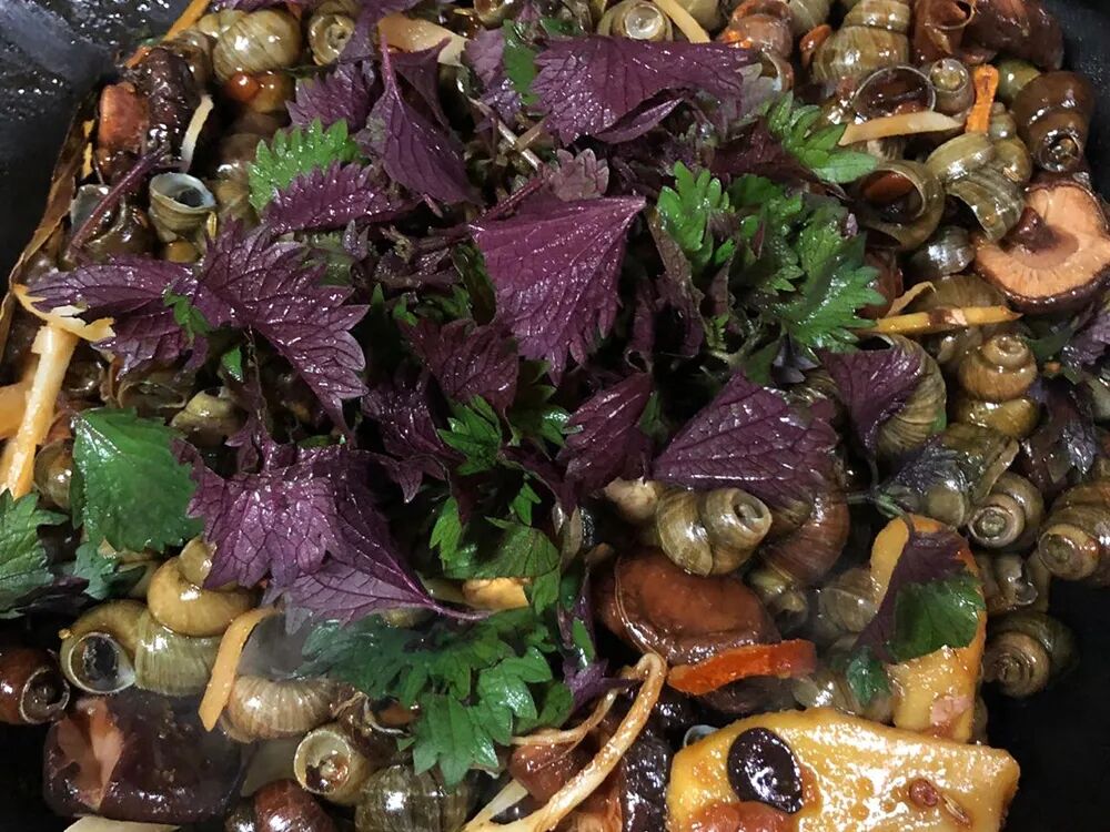 在南方农村,人们很喜欢种紫苏,到了夏季吃田螺、吃小龙虾的季节,紫苏是少不了的一味调料。紫苏炒田螺或者其他螺都可以,它特有的香味不仅能给田螺增香,而且还有很好的去腥效果。田螺一般带有比较重的泥腥味,紫苏叶中的精油物质能很好地去除泥腥味。