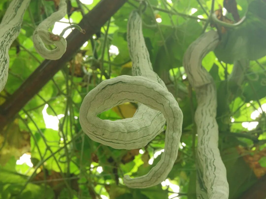 蛇豆分为白皮和青皮两种,笔者吃过白皮的蛇豆,长得弯弯曲曲,上面还有绿色的纹路,看起来真的像蛇一样,特别有意思。有的人菜园里种了一片蛇豆,看上去就好像很多蛇吊在架子上,不认识的人估计能吓一跳。