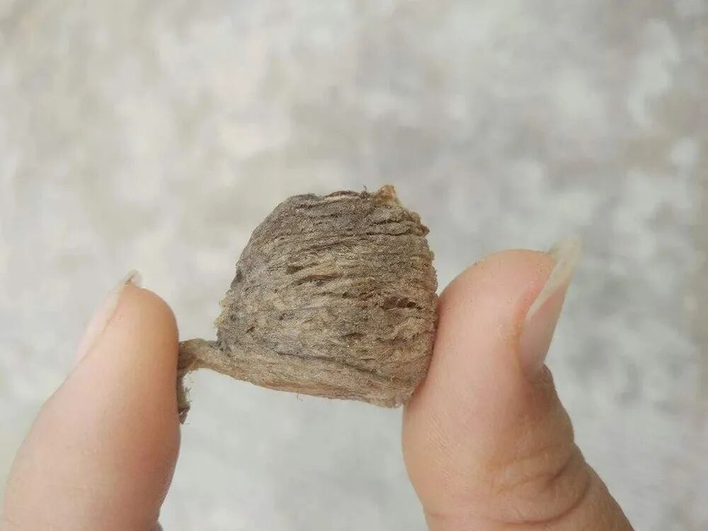 不过对于很多人来说,螳螂的卵蛸还是比较陌生的东西,其实这东西在过去的农村并不少见,除了在桑树上能够见到外,在杨树、柳树、槐树、芦苇等植物上也能见到,其外形像是一个瘪了的枣子,颜色多为黄褐色或者灰白色,少数为黑色。