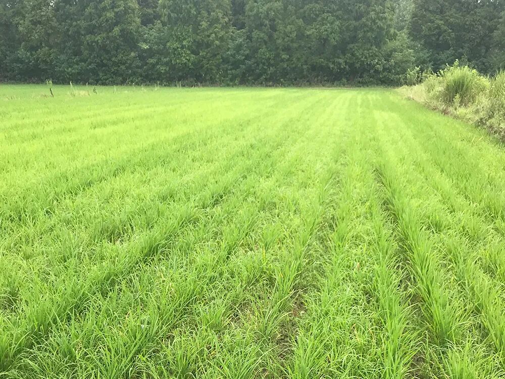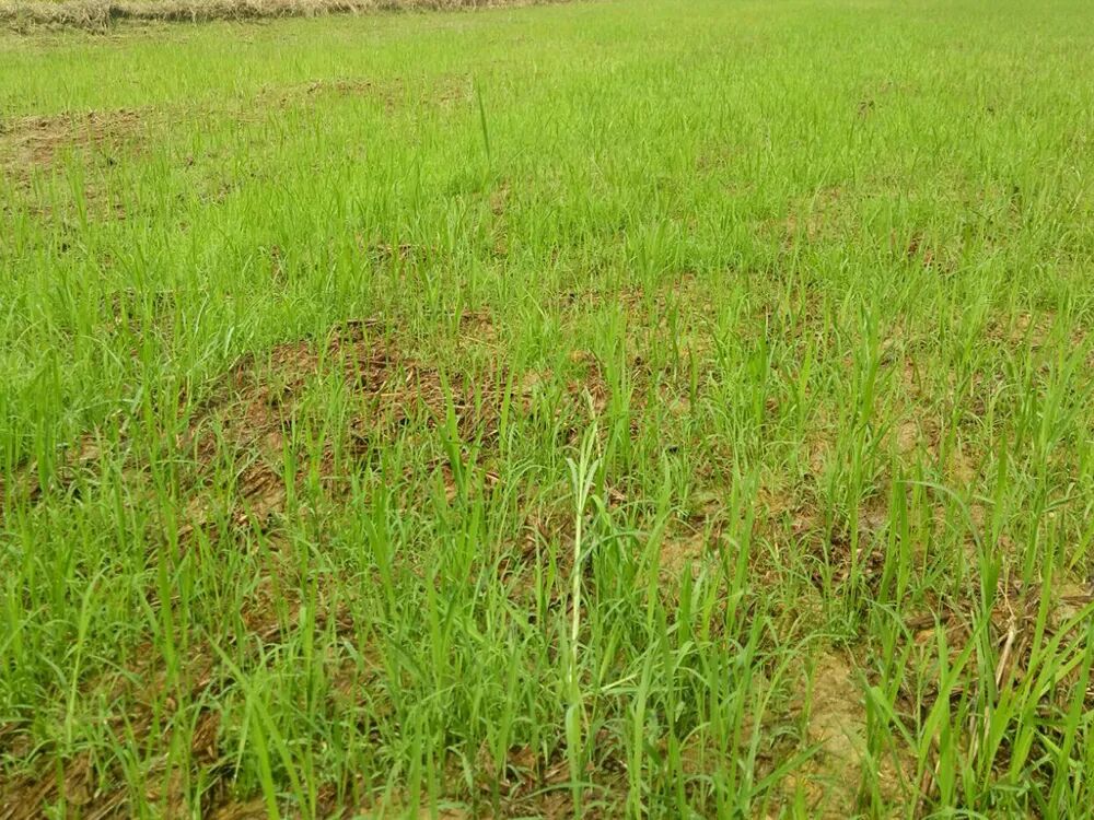 到了老村大伯家的稻田里,放眼望去,确实能看到不少田螺在泥缝中,不过更多的则是一种野草,在稻田里长得密密麻麻的,而这种野草就是本期要介绍的“千金子”。