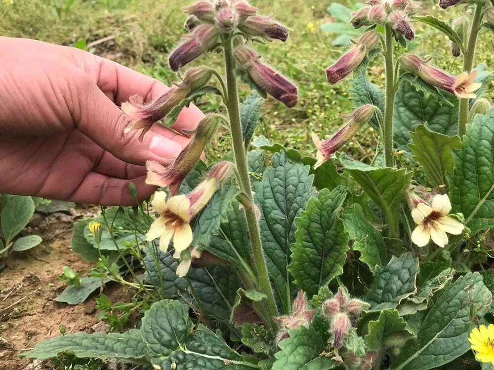 地黄在中原地区的农村分布量那可是相当多,路边、荒坡、山坡上随处可见,尤其是它开花的季节,野外一片黄紫色的小花,看着还挺漂亮。小时候经常在山坡上摘它的花吸里面的汁液,吸一口很甜,有花蜜的香味。