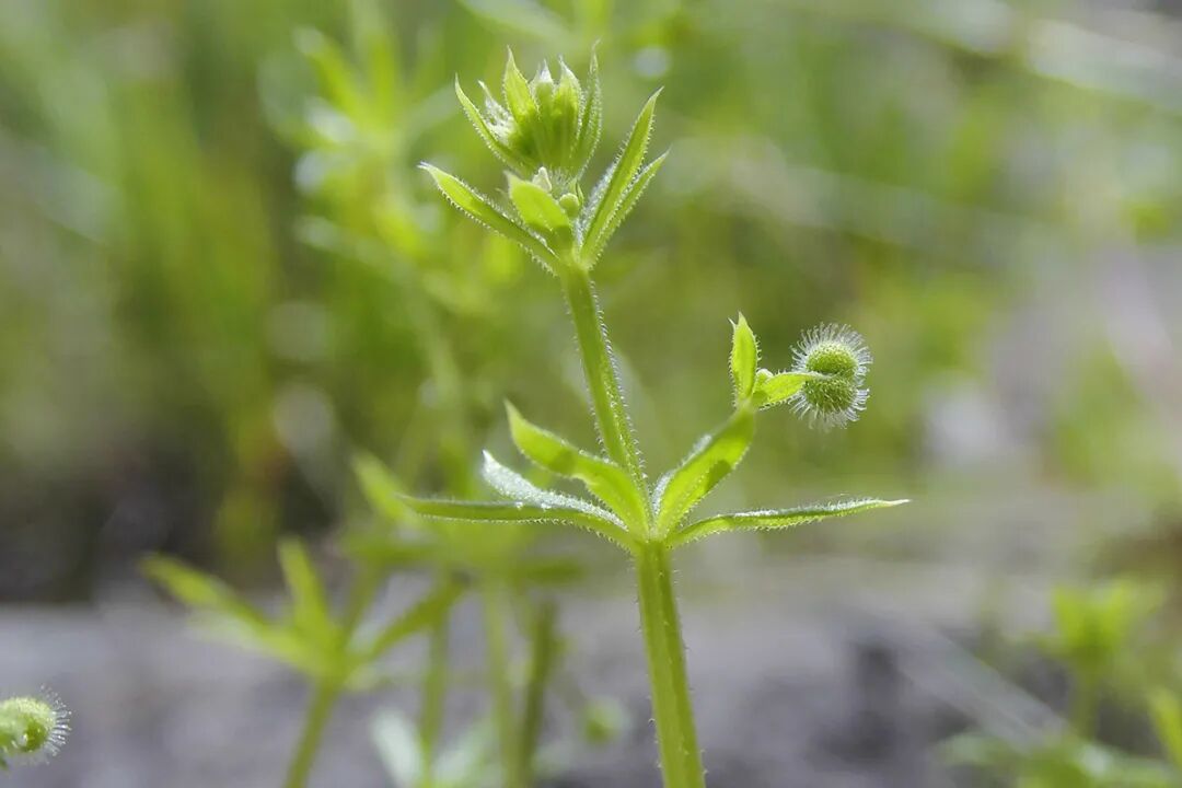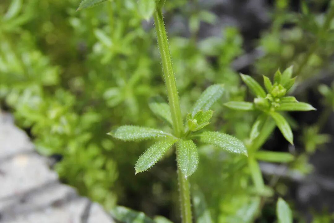 在民间,猪殃殃有着“锯锯藤”、“锯锯草”、“沾沾草”,这是因为猪殃殃全身上下均有倒生小毛刺,包括它的果实也一样有刺,说它满身是刺一点都不为过。而它身上的刺虽小,但却很厉害,用手一摸,很容被划伤。