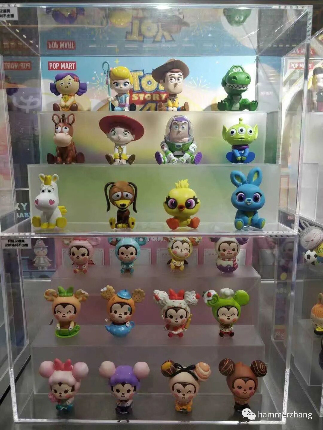 第一行第二行的有些人物是《玩具总动员》系列的人物,泡泡玛特进入市场时,就将自己定位成潮流玩具品牌,而非传统意义的玩具厂商。
